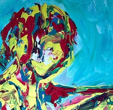 Theresa Monogle, contemporary artist and intuitive storyteller, a palette-knife painter shaping emotion with colour, texture, and fearless movement.