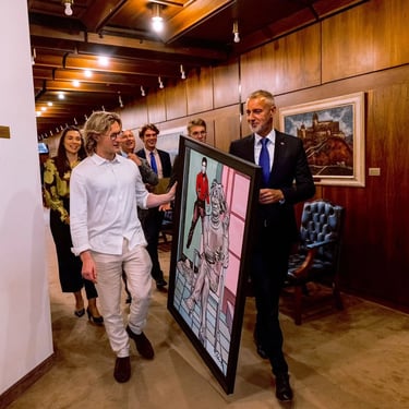 Known for his meticulous detail and fearless use of color, Oscar Eagle’s work captures both surface beauty and deeper psychological tension. Each piece invites viewers to look closer—revealing layers of meaning beneath the polished realism. Rooted in contemporary life yet timeless in execution, his art reflects the pulse of the city that shaped him, channeling London’s grit, glamour, and creative rebellion into every canvas.
