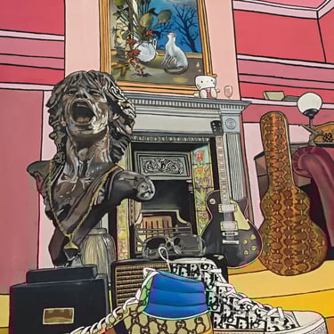 Oscar Eagle is a London-born hyper-realist and pop-art storyteller whose work fuses technical precision with raw cultural energy. With paint on his hands and rock-’n’-roll in his veins, Eagle creates striking visual narratives that blur the line between fine art and popular culture. His paintings draw from music, film, fashion, and modern iconography, transforming familiar symbols into bold, emotionally charged statements.